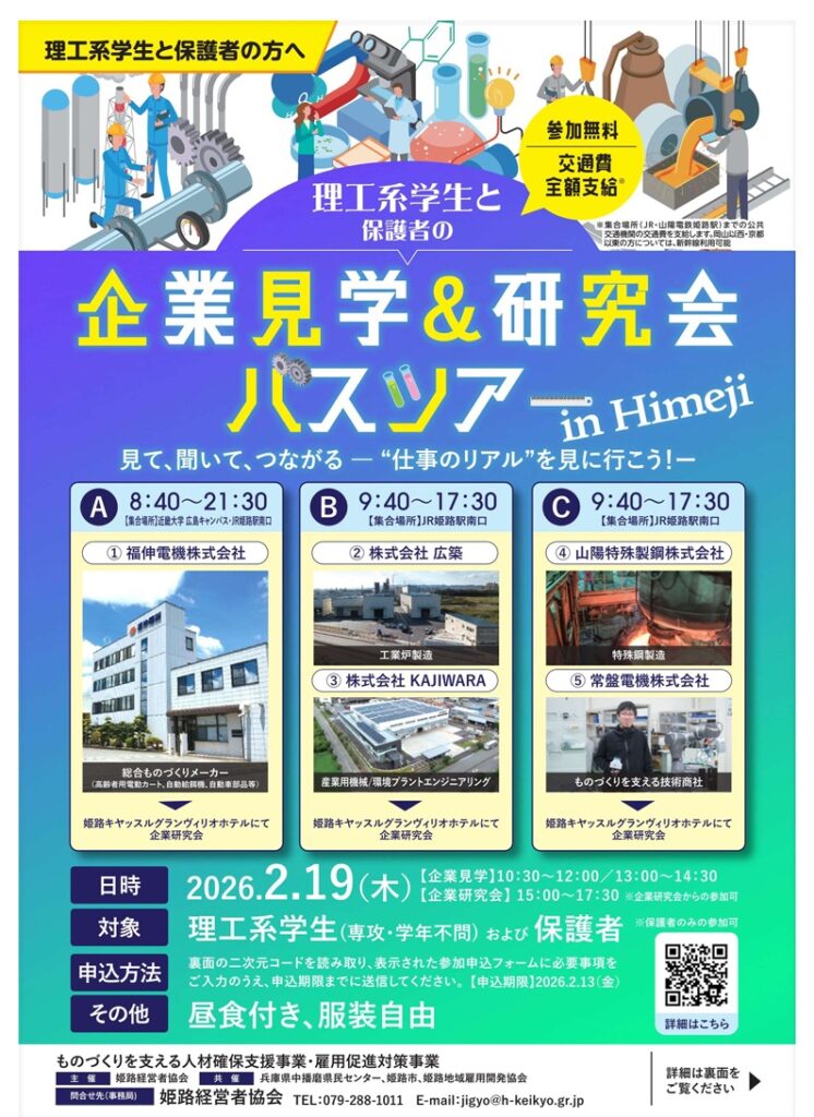 理工系学生と保護者の企業見学&研究会 バスツアー ㏌ Himeji【ものづくりを支える人材確保支援事業・雇用促進対策事業】|人材確保支援|姫路経営者協会